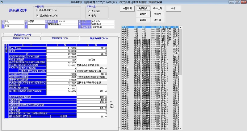 個人台帳設定 個人台帳の所得税を手入力に変更、、、
