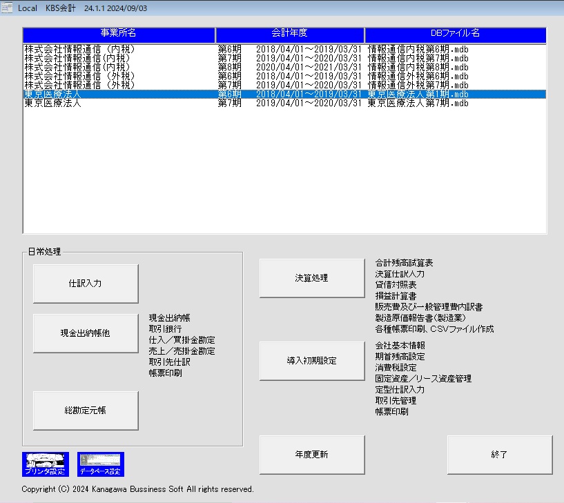 「KBS会計は会計に必要な最低限の機能を提供し、スタンドアロン(オフライン)で動作するソフトウェアです。 国内では多くの会計ソフトがサーバーを利用したものがリリースされていますが、自然災害が多い国であること、機密保持の観点から危険が多く自社内のクローズ環境で運用されることがベストと考えています。 特にこれから企業を設立される場合は、誰でも使用できる最低限の機能、簡単な操作で利用できます。 尚、改善のため、随時、ソフトの更新を行いますので、変更履歴を確認して最新版の実行形式プログラムをご利用ください。また、操作等に関する質問等はトップページの問い合わせEメールで受け付けます。 動作環境 ■OS Windows XP SP3、Windows7、Windows8、Windows10