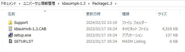 ■パッケージのダウンロード .. 「ユニバーサル情報管理」 Windows 10、11用パッケージ kbsuimpk-1.4.zip 最新実行形式ファイルを含む 2024/10/08 最新 実行形式ファイル(プログラム) kbsuimivb-1.4.exe 住所録管理で実行時エラーになる場合があり、原因調査中です 【注意】 Setup.exe 起動でsetup.lst がオープンできません のエラーがあるときは package1.3 をデスクトップに複写貼り付け実行してください 2023/09/13