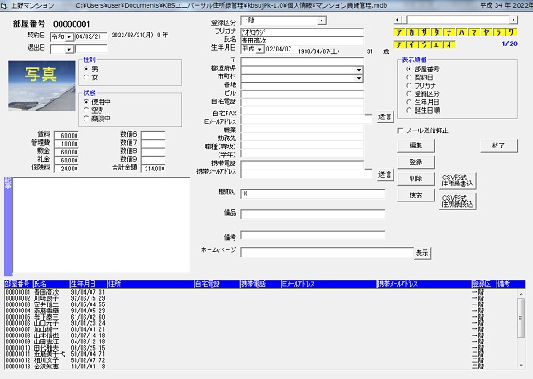 多様な並替機能 メール送信機能 ホームページ表示機能 CSVファイル出力でExcelで編集、グラフ表示ができます 日付入力は西暦に変更しました 95/2/4